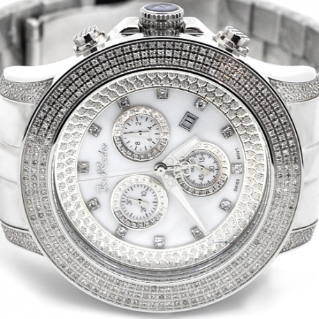 Add to your collection this magnificent diamond watch for men by Joe Rodeo JRPL1 from Pilot collection. The case, bracelet and bezel are made of durable stainless steel, and encrusted with 3.15 carats of genuine white diamonds. The timepiece also features white mother-of-pearl dial with three sub-dials, and comes with two extra straps of different colors. For accurate time, it is equipped with high-quality Swiss quartz movement that has chronograph and date functions. 24diamonds.com is official dealer of Joe Rodeo, so you will get 1-year factory warranty and professional after-warranty service.