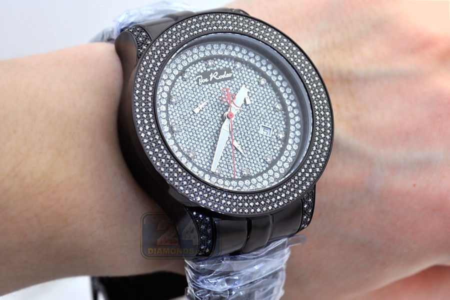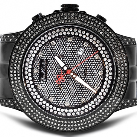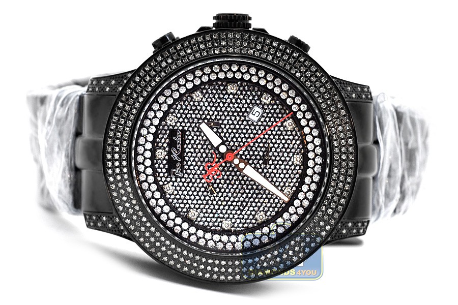Enjoy wearing this glamorous diamond watch for men by Joe Rodeo JRPL36 from Pilot collection. It features durable stainless steel case, bracelet and bezel covered with long-lasting black pvd and encrusted with genuine white diamonds totaling 3.15 carats. The watch also has pave dial, and comes with two extra straps of different colors. For accurate time, it is equipped with high-quality Swiss quartz movement that has chronograph and date functions. 24diamonds.com is official dealer of Joe Rodeo, so you will get 1-year factory warranty and professional after-warranty service.