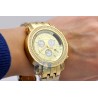 Look at this unique diamond watch for men by Joe Rodeo JTY1 from famous Tyler collection. It features yellow gold plated stainless steel case, bracelet and bezel encrusted with 2.00 carats of genuine white diamonds. The watch has golden color dial with white sub-dials, and comes with two extra straps of different colors. For showing the exact time, it goes with high-quality Swiss quartz movement that has chronograph and date functions. 24diamonds.com is official dealer of Joe Rodeo, so you will get 1-year factory warranty and professional after-warranty service.
