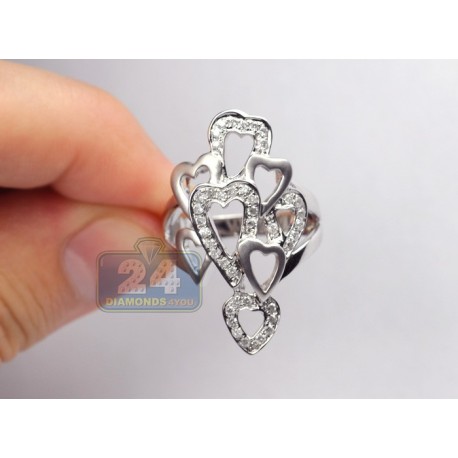Matte 14K White Gold 0.55 ct Diamond Multi Heart Womens Ring