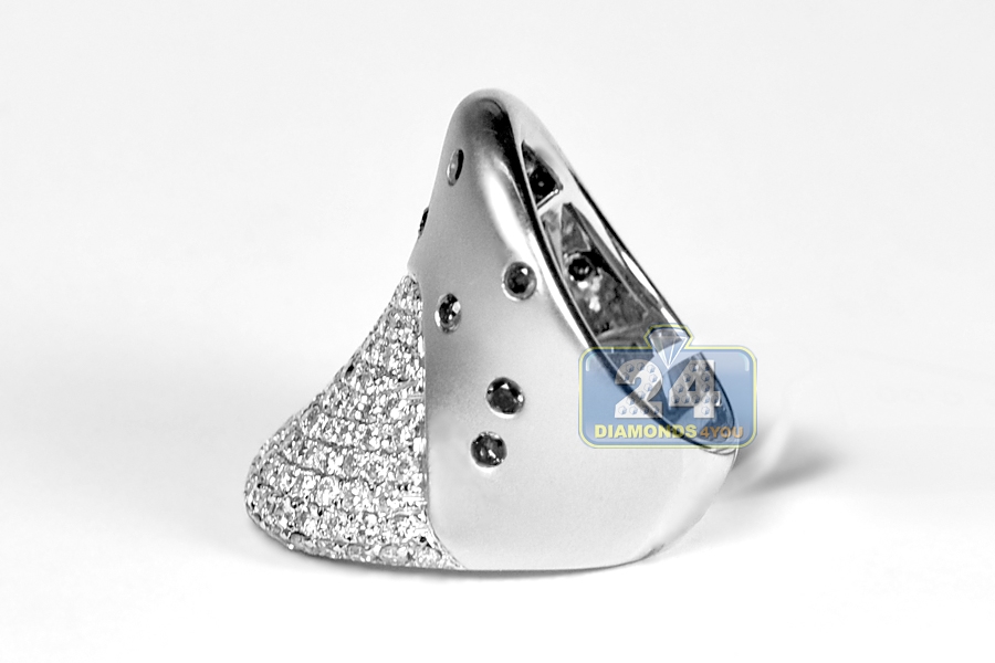 Simply breathtaking & stunning, this fashion diamond band is one of its kind! The ring is masterly handmade of cool 14k white gold, matte polished, and gorgeously sparkles with 2.68 carats of white and black round-cut diamonds. If you are looking for a special red carpet piece, this would be the one!