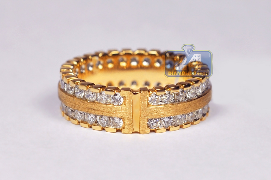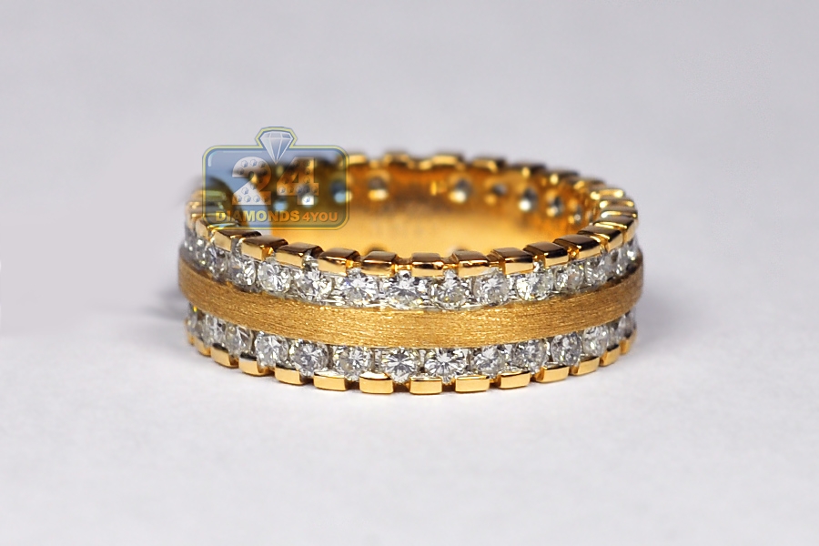 Matte 14K Yellow Gold 1.84 ct Diamond Womens Eternity Ring
