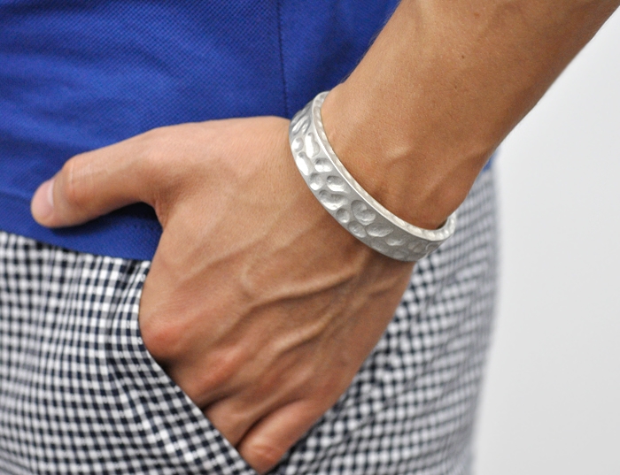 Matte Silver Diamond Camouflage Mens Cuff Bracelet Edus&Co