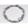 14K White Gold 8.63 ct Blue Diamond Bullet Link Mens Bracelet