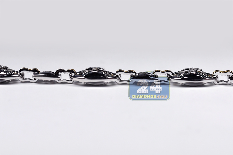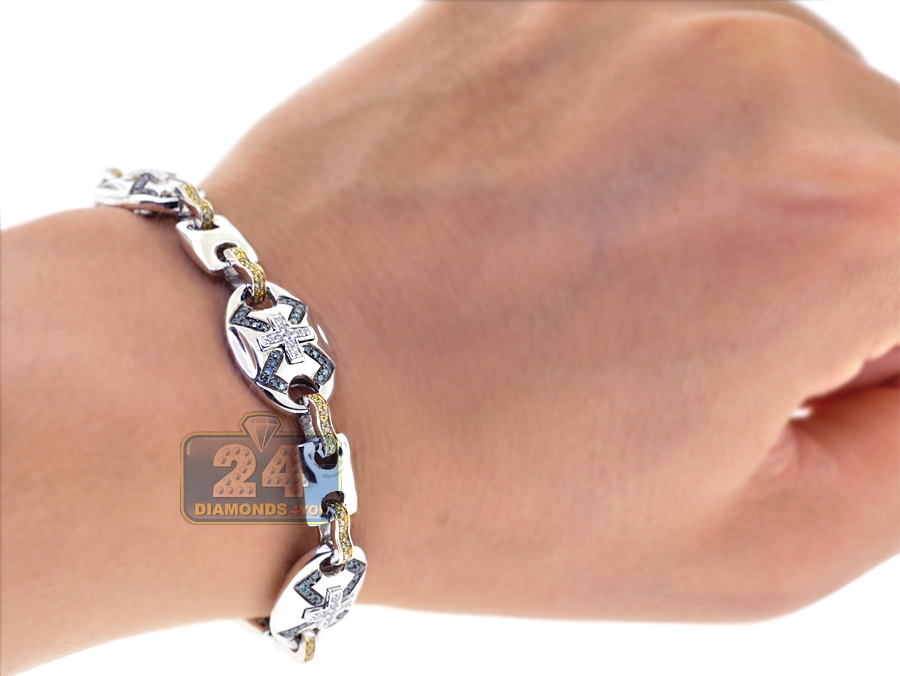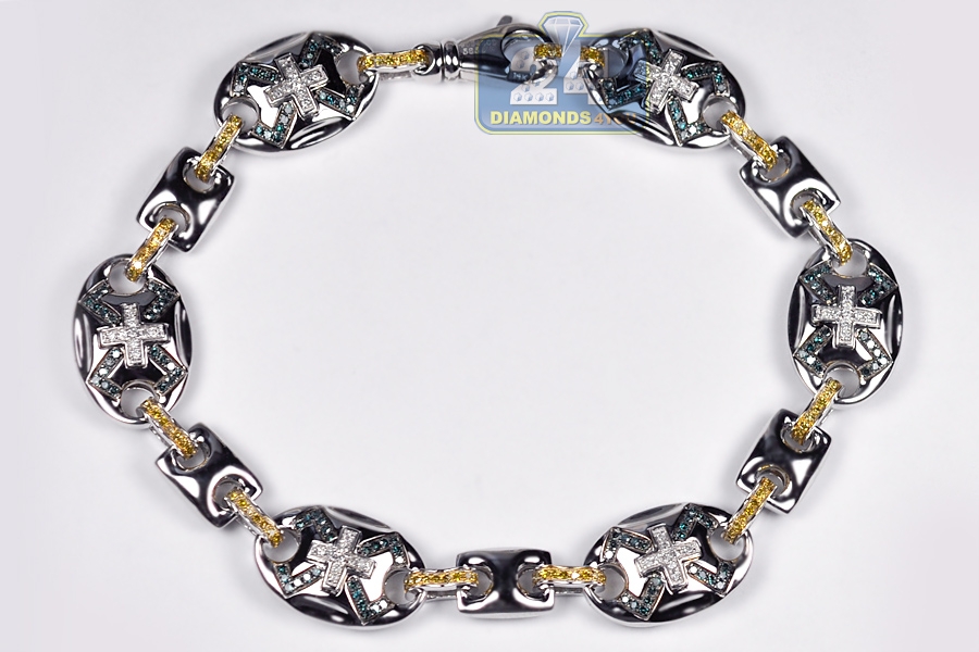14K White Gold 1.60 ct Blue Diamond Mens Mariner Bracelet