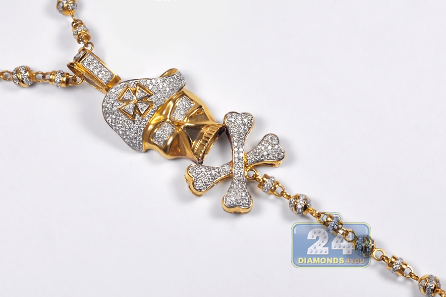 14K Yellow Gold 15.87 ct Diamond Anchor Skull Rosary Necklace