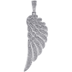 If you're looking for handsome and angelic look, this diamond wing pendant is a right choice! Lovely created from cool 14k white gold with high-polished shiny look. The back has amazing matte finish. Our men's pendant is encrusted with 1.72 carat of icy white round brilliant-cut genuine diamonds. The piece measures 56 mm in total length, and the wing is 47 x 18 mm. Our men's angel charm may fly to your jewelry collection!