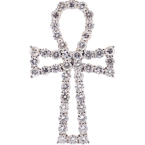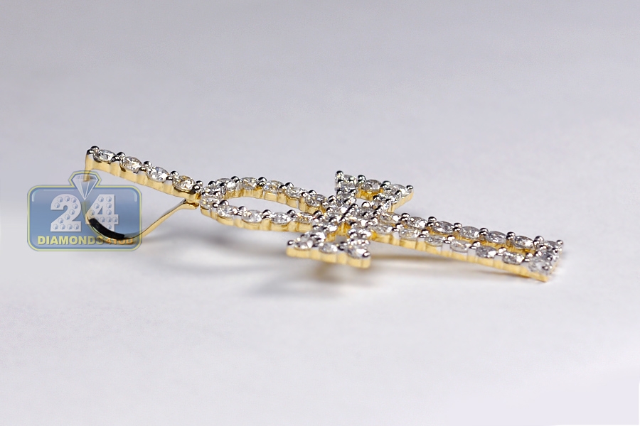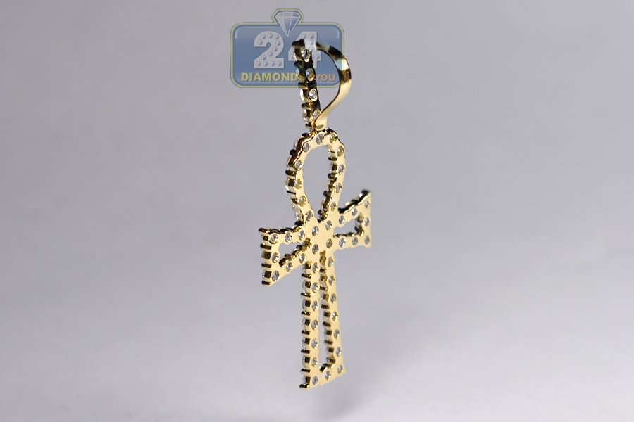 14K Yellow Gold 3.29 ct Diamond Ankh Cross Open Pendant