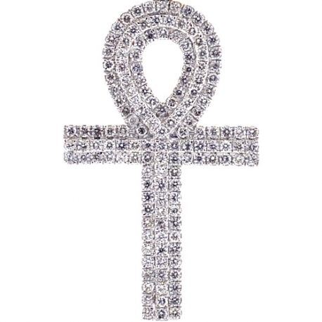 Our diamond Egyptian ankh cross is a handsome expression of faith! It's expertly manufactured from warm 14k yellow gold, and highly polished to have smooth shimmering finish. It's also amazed with 3 rows of icy white round brilliant-cut natural diamonds, all weighting 1.61 carat. The jewelry features 51 mm in total length (37 mm without bail) and 23 mm in width. The bail is suitable for a necklace of up to 4 mm. This men's religious pendant has a meaningful style you will adore!