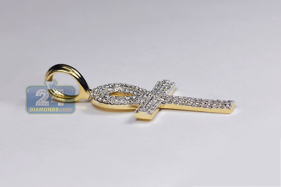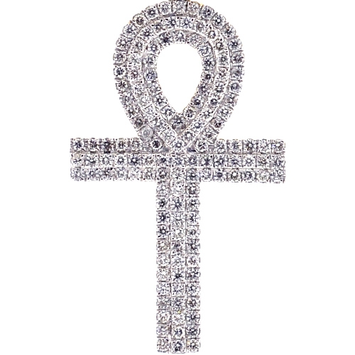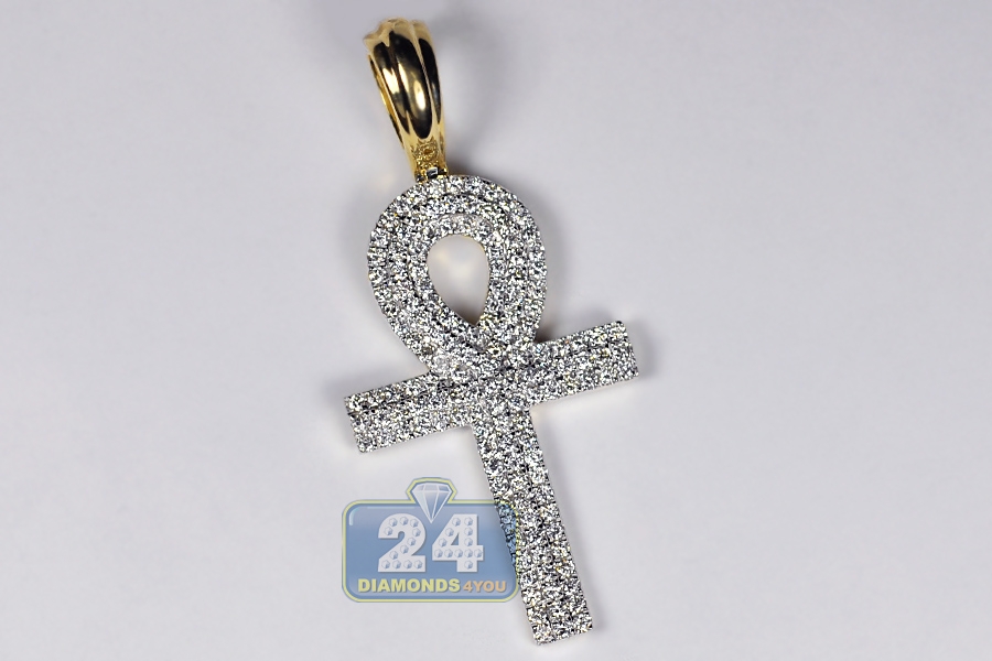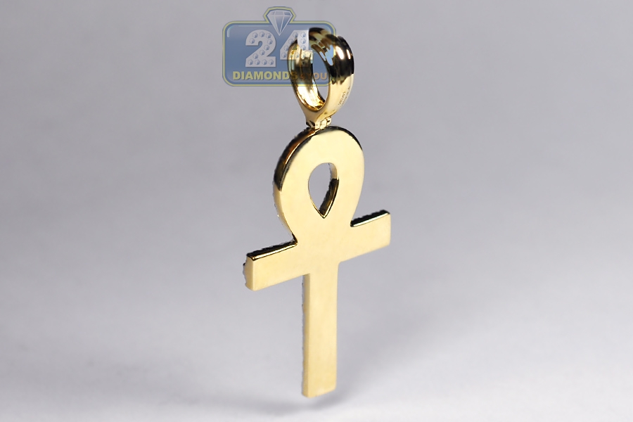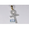 14K Yellow Gold 1.61 ct Diamond Ankh Cross Pendant 2 inches