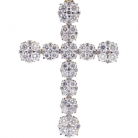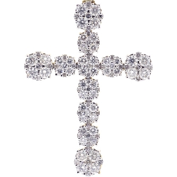 Shimmering expression of faith and fashion-forward look are presented by our handsome diamond cluster cross! It's artfully produced from warm 10k yellow gold, and highly polished for ultra smooth finish. It's studded with 7.38 carats of icy white round brilliant-cut genuine diamonds. The piece of jewelry features 72 mm in total length (55 mm without bail) and 40 mm in width. The bail is suitable for a 7 mm necklace. Make a stylish religious statement wearing this men's pendant!