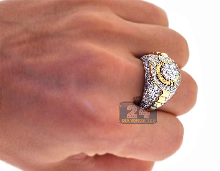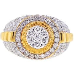 Mens Diamond Cluster Pinky Ring 14K Yellow Gold 3.22 ct
