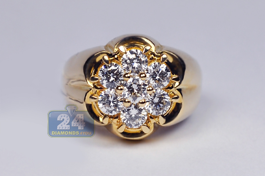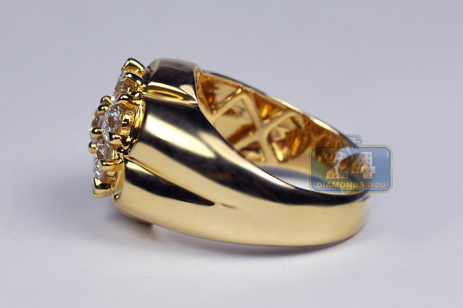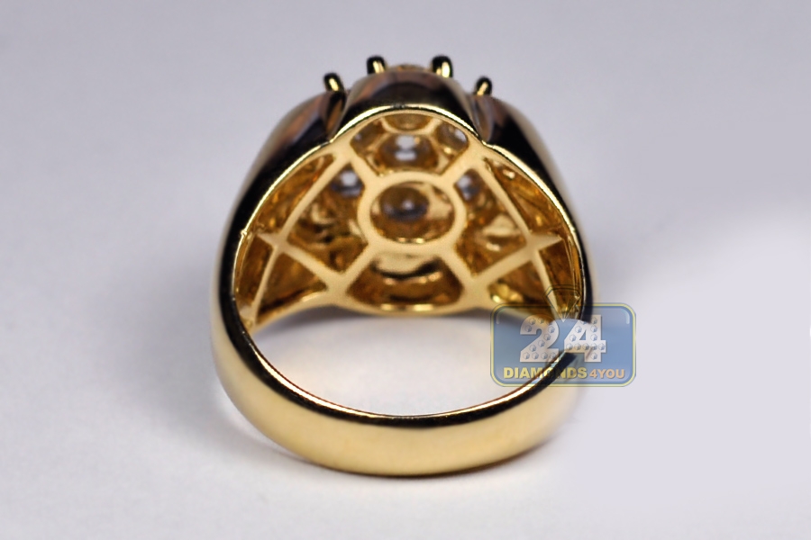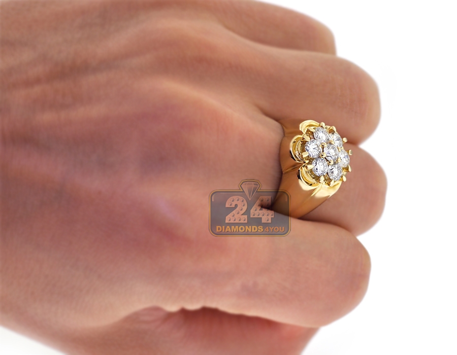 Mens Diamond Cluster Ring 14K Yellow Gold 1.80 ct