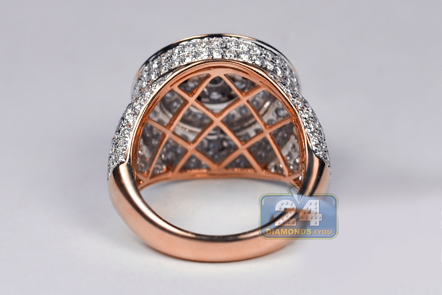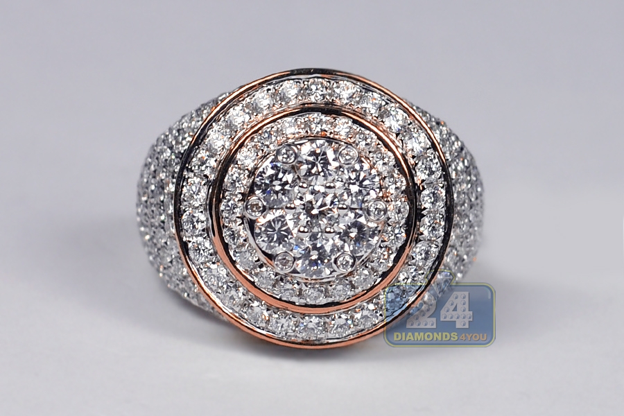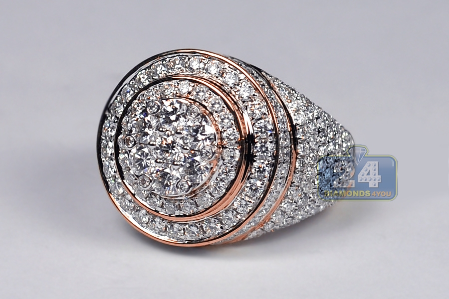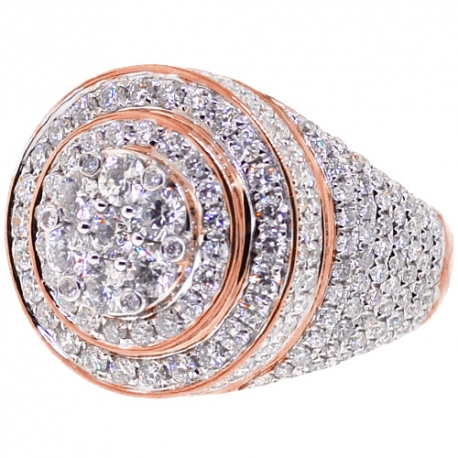 14K Rose Gold 4.58 ct Diamond Cluster Mens Round Ring