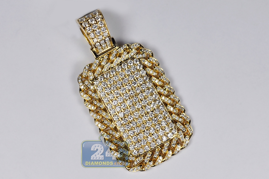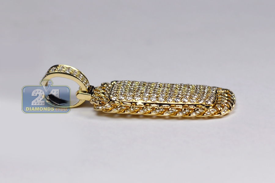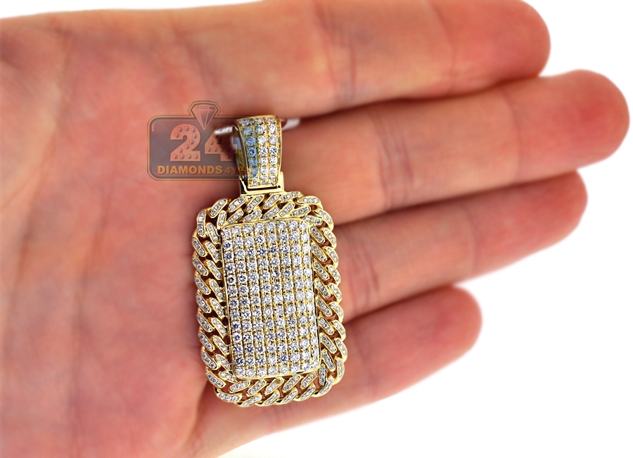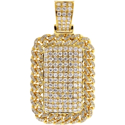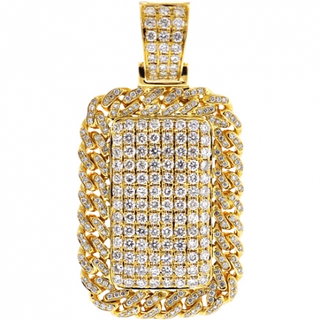 14K Yellow Gold 2.81 ct Diamond Cuban Frame Dog Tag Pendant