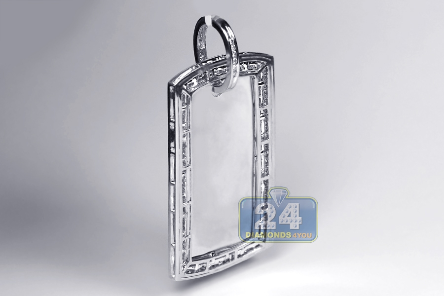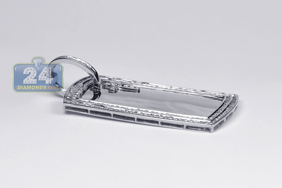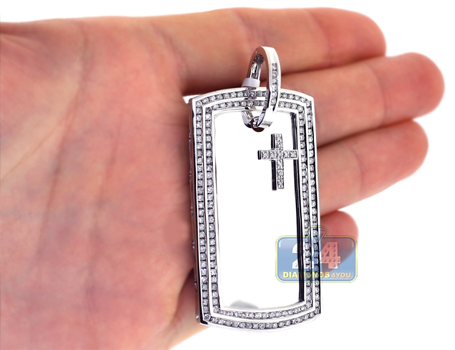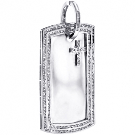 10K White Gold 3.03 ct Diamond Dog Tag Mens ID Style Pendant