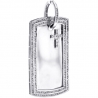 Make this men's diamond dog tag ID pendant your own by adding a personal message! Masterly created from cool 10k white gold, it is encrusted with 3.03 carats of round brilliant-cut white diamonds. Our diamond pendant measures 67 mm in hanging length, and tag itself is 56 x 32 mm. The bail can fit a necklace up to 8 mm in thickness. The diamond cross on the right upper corner adds a spiritual touch! Please note that if the item is engraved per your request, it cannot be returned.