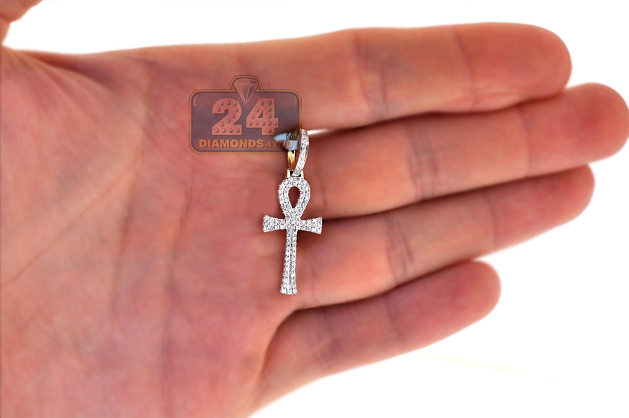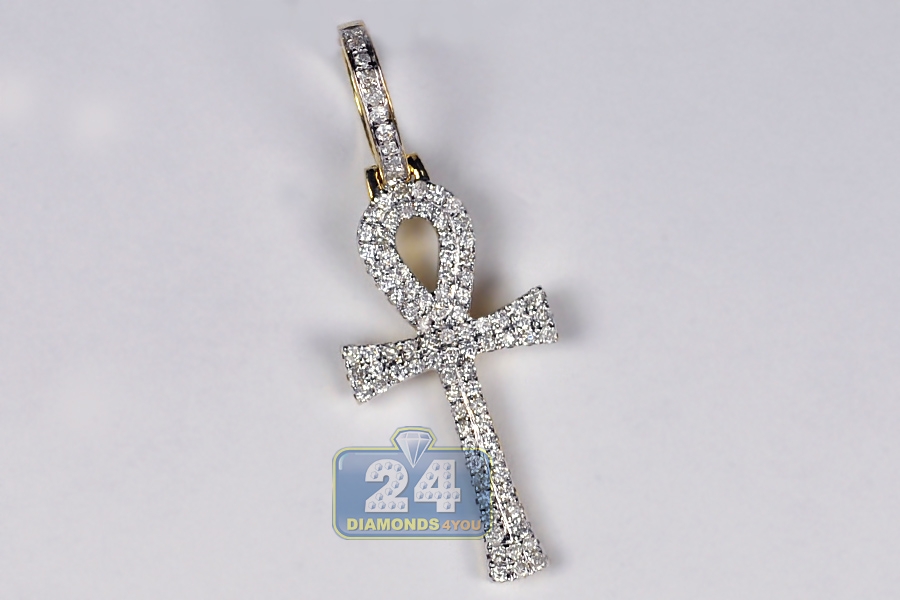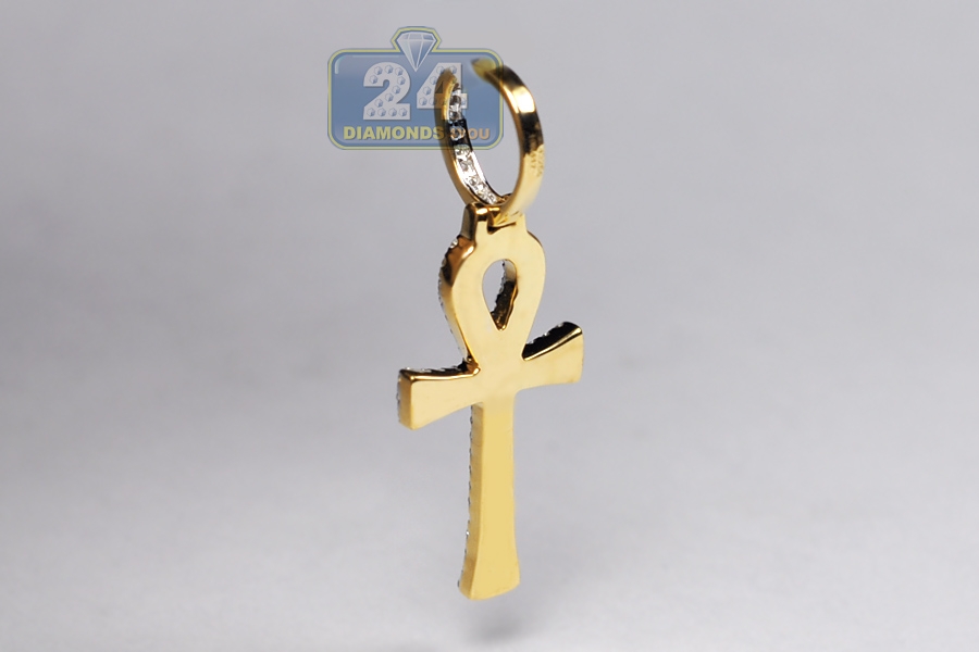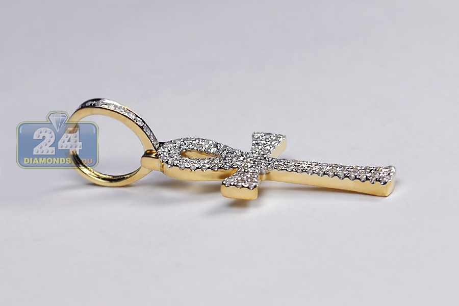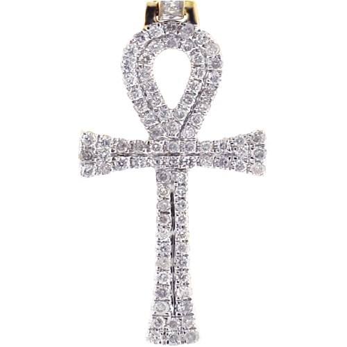 10K Yellow Gold 0.46 ct Diamond Mens Egyptian Ankh Cross