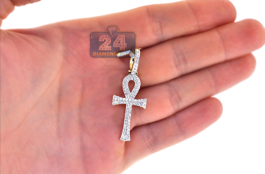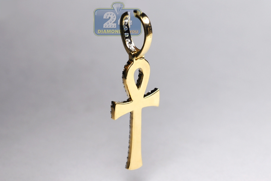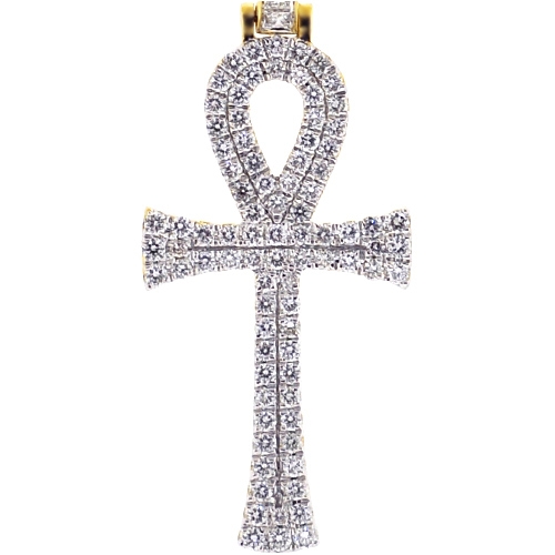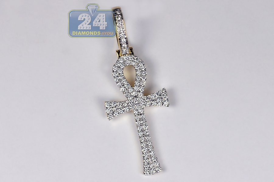 10K Yellow Gold 1.13 ct Diamond Mens Egyptian Ankh Cross