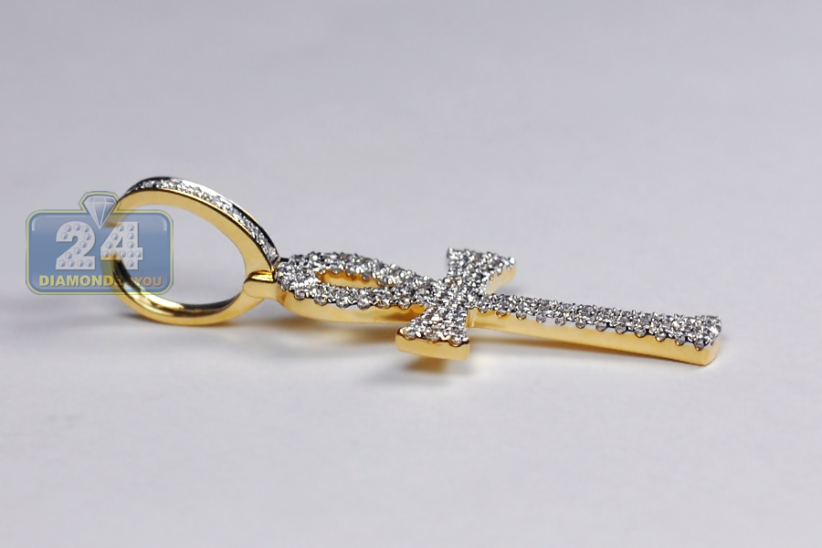 14K Yellow Gold 1.00 ct Diamond Mens Egyptian Ankh Cross