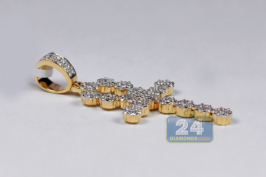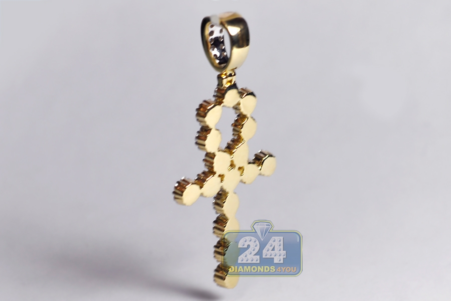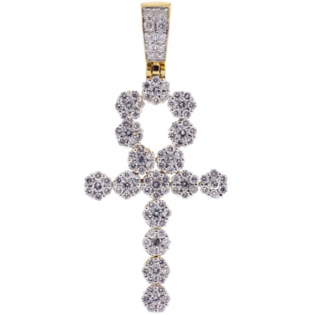 14K Yellow Gold 2.85 ct Diamond Egyptian Ankh Cross Mens Pendant