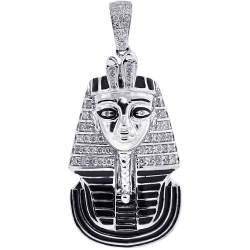 10K White Gold 0.56 ct Diamond Enamel Pharaoh Mens Pendant