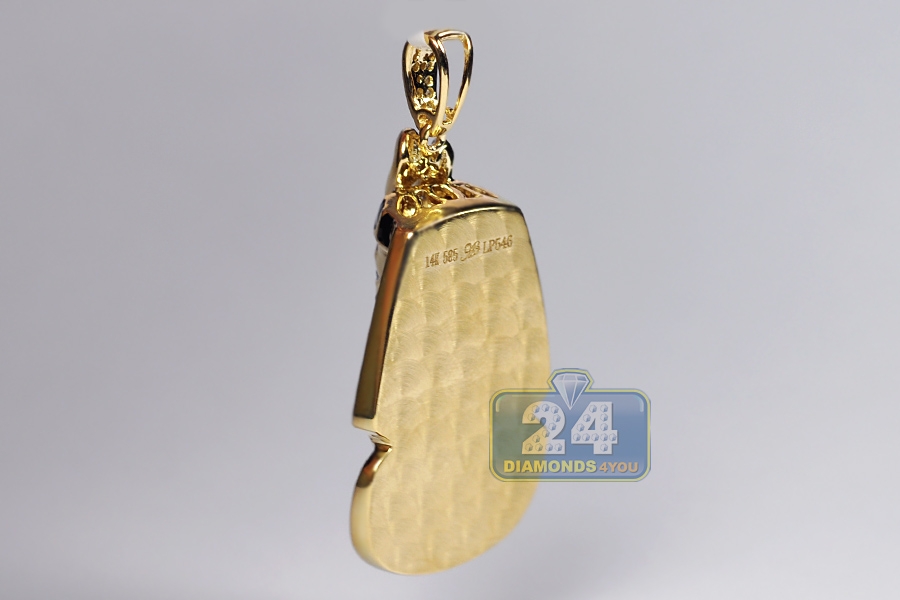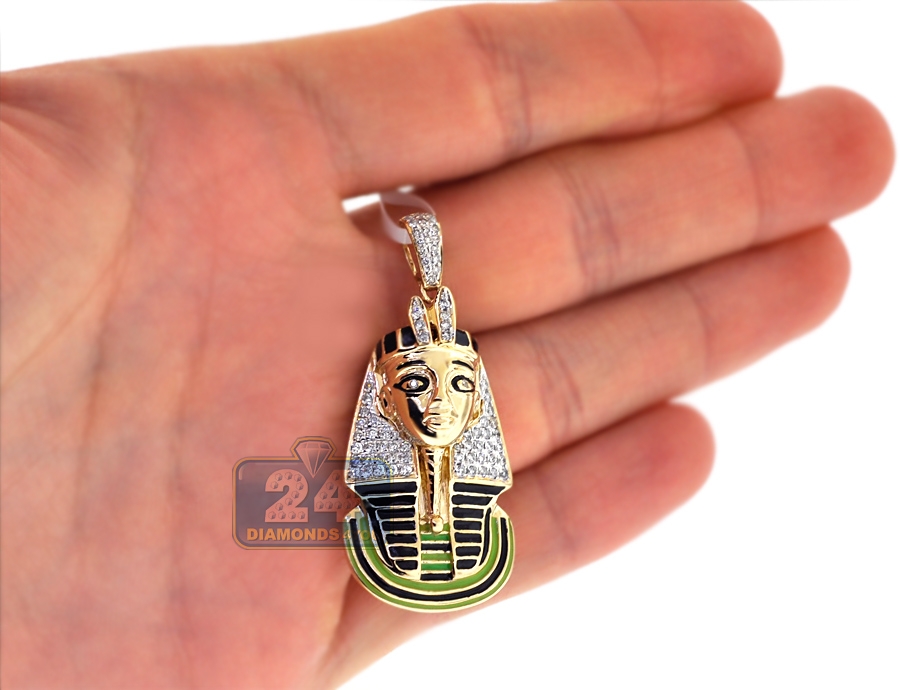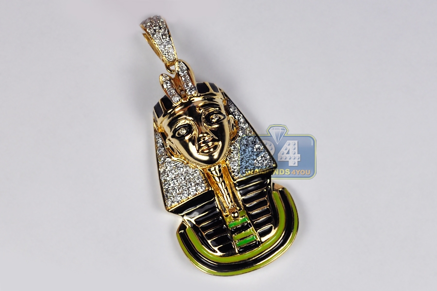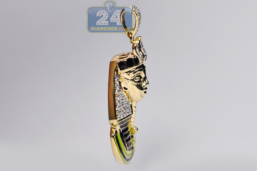 14K Yellow Gold 0.62 ct Diamond Enamel Pharaoh Mens Pendant