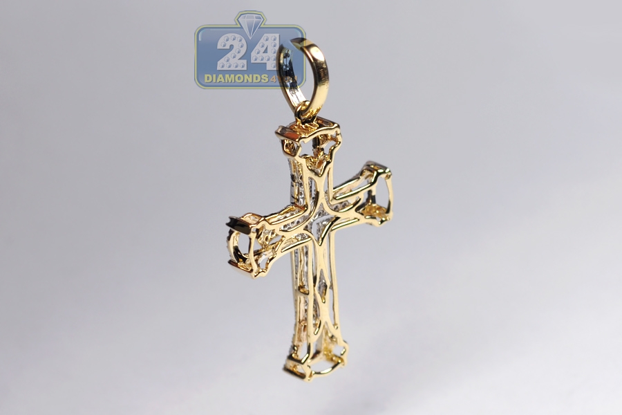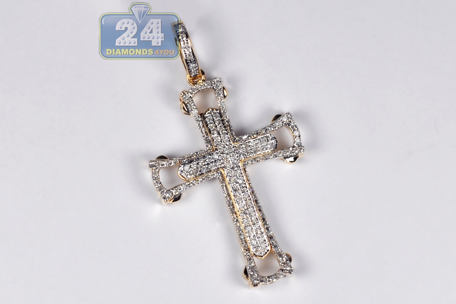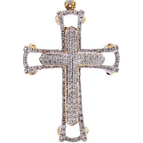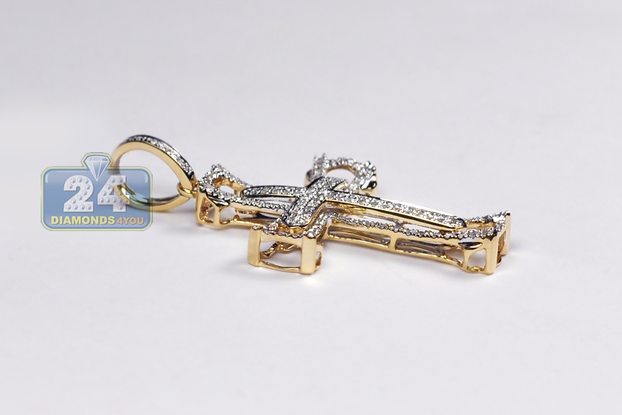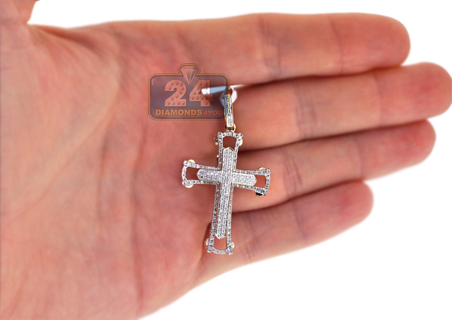 10K Yellow Gold 0.59 ct Diamond Frame Mens Cross Pendant