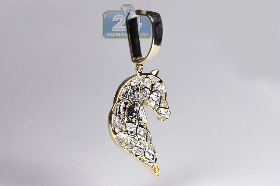 10K Yellow Gold 1.07 ct Diamond Horse Head Mens Pendant