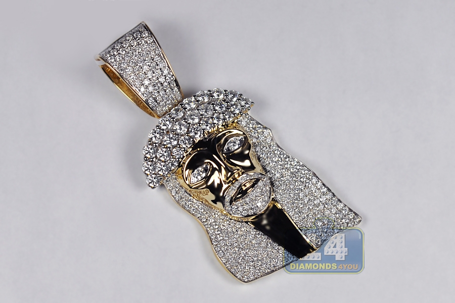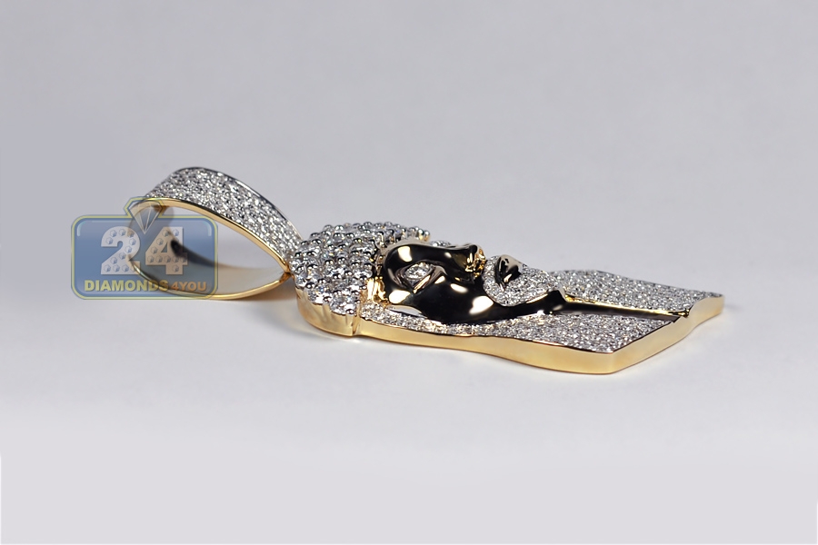 14K Yellow Gold 7.21 ct Diamond Jesus Christ Head Mens Pendant
