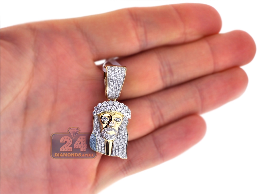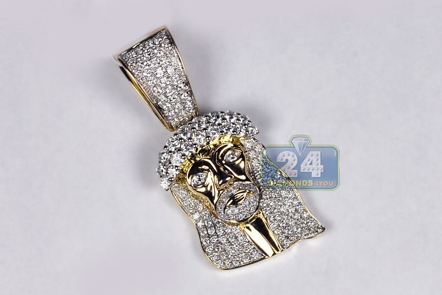 14K Yellow Gold 1.50 ct Diamond Jesus Christ Face Pendant