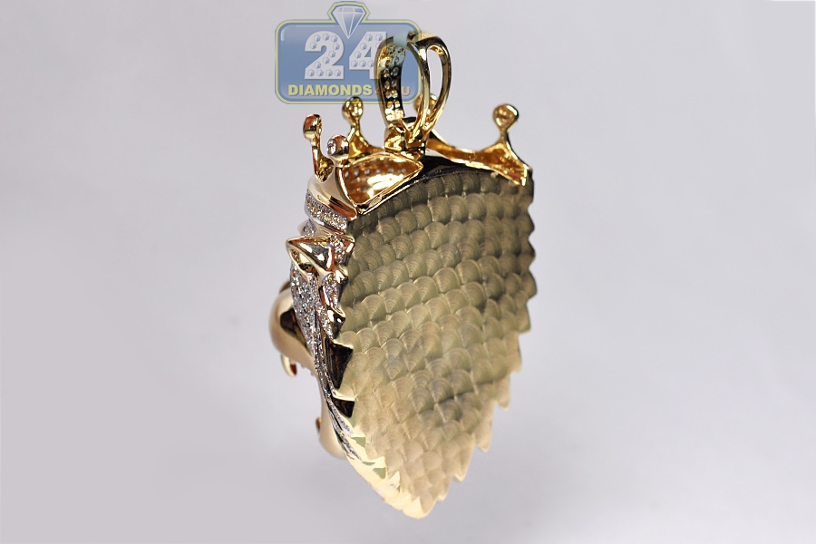 10K Yellow Gold 4.12 ct Diamond Crown Lion Head Pendant