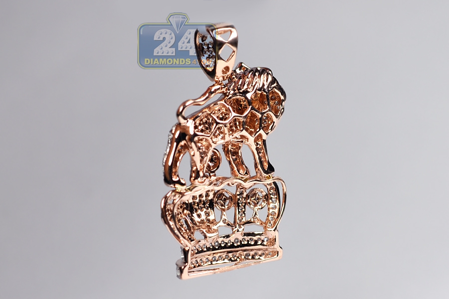 14K Rose Gold 1.69 ct Diamond Lion Crown Mens Pendant