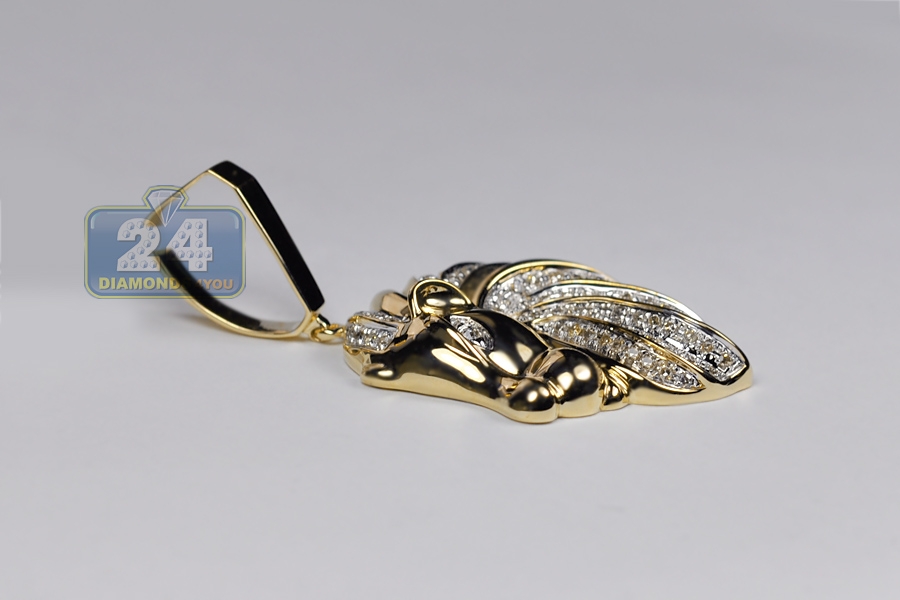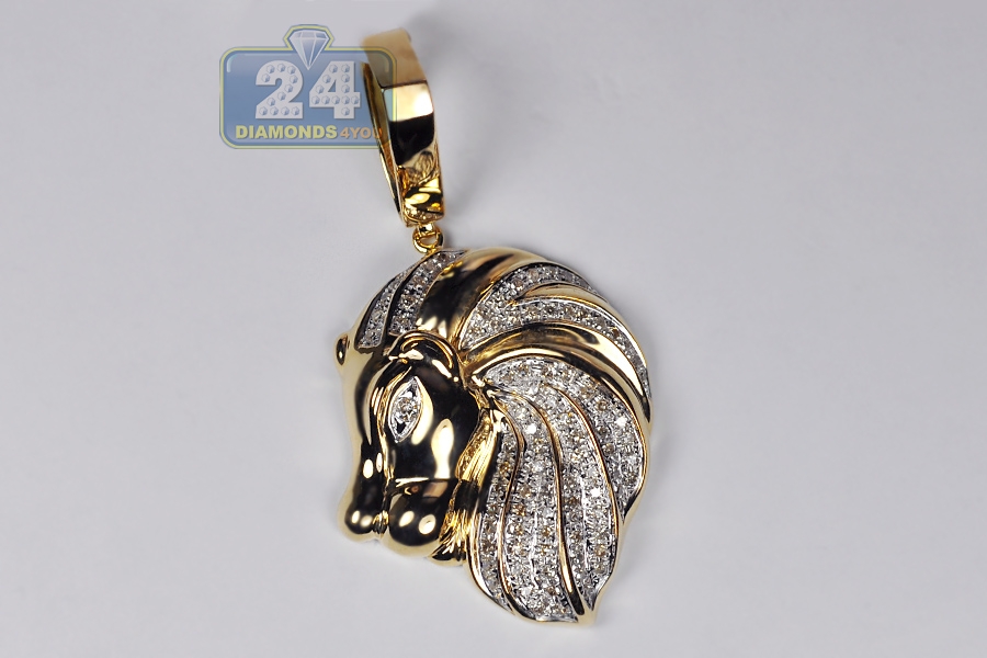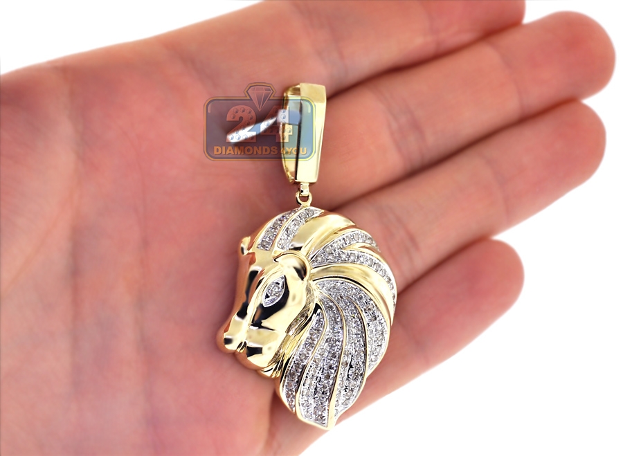 10K Yellow Gold 0.84 ct Diamond Lion Head Mens Pendant
