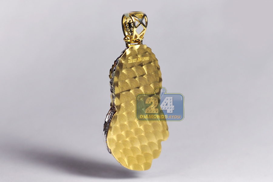 We are pleased to present men's magnificent diamond pendant featured Moses. He was an important prophet in Judaism, Christianity, Islam and other faiths. The charm is artfully handmade of affordable 10k yellow gold, and encrusted with icy white round brilliant-cut genuine diamonds, totaling 2.05 carats. Our men's diamond pendant has hanging length of 46 mm, and figure itself is 38 x 23 mm. This rare-to-find charm depicts a symbol of God's law!