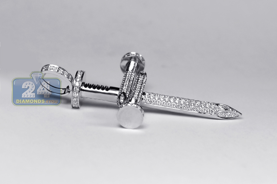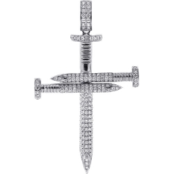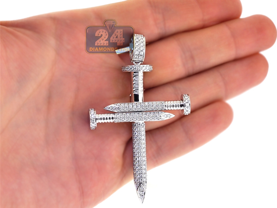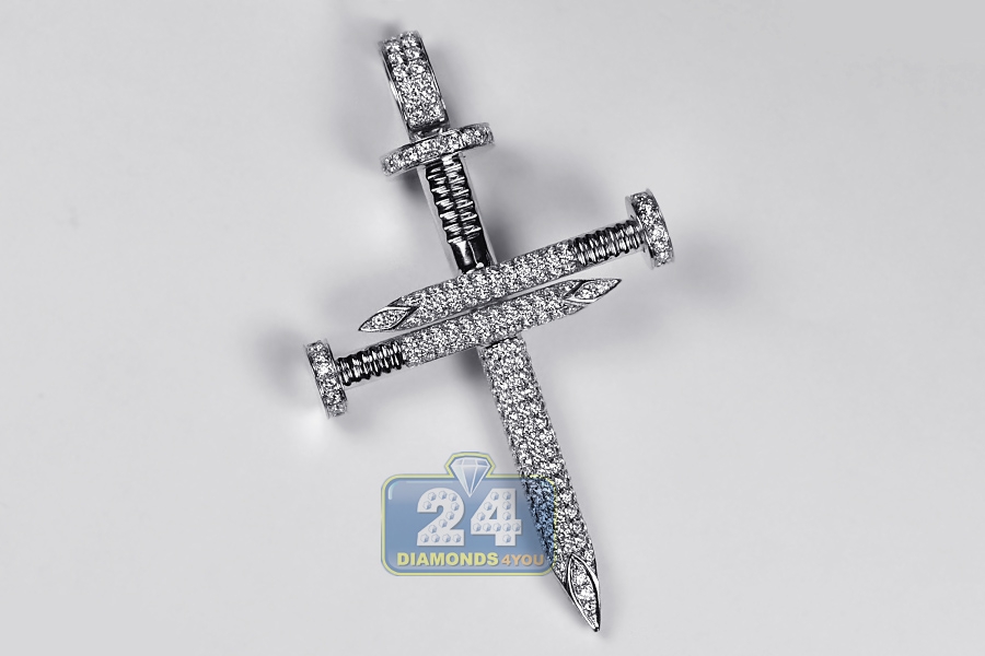 10K White Gold 3.51 ct Diamond Nail Cross Large Pendant