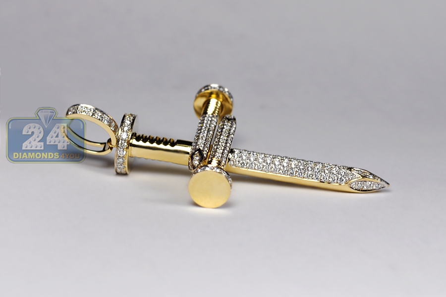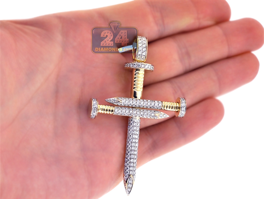 10K Yellow Gold 3.48 ct Diamond Nail Cross Large Pendant