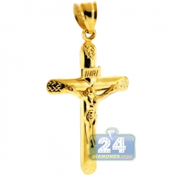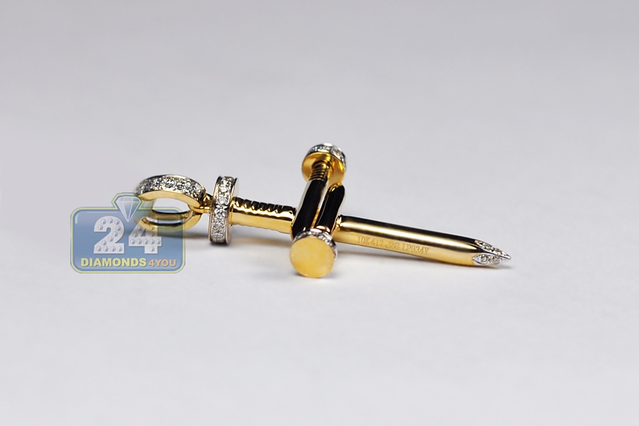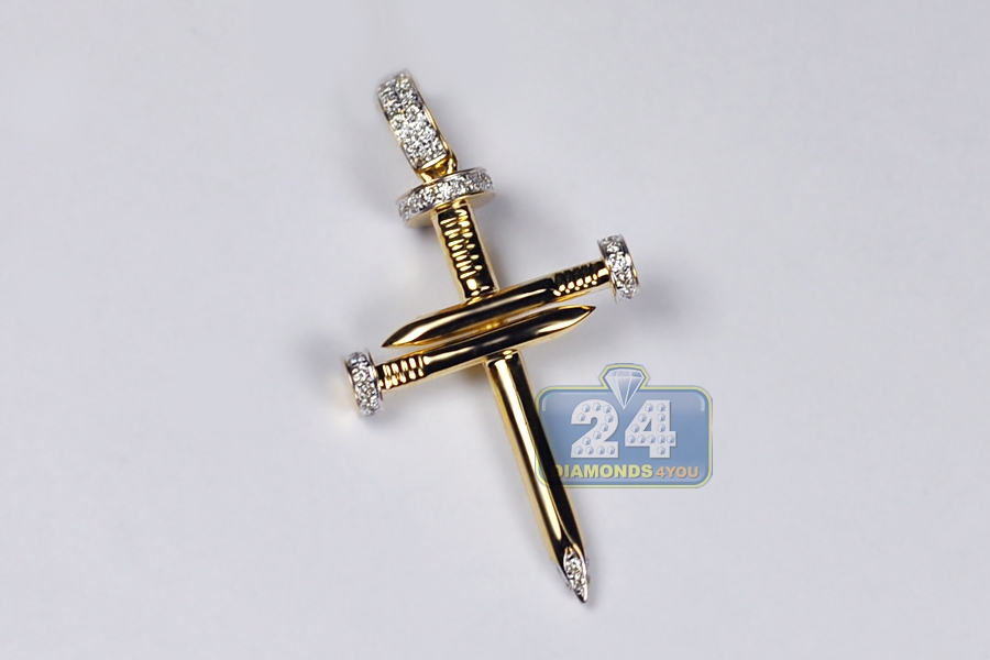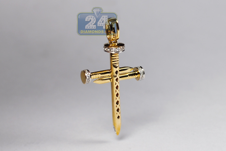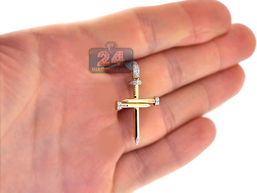 14K Yellow Gold 0.20 ct Diamond Nail Cross Mens Small Pendant