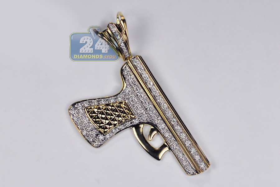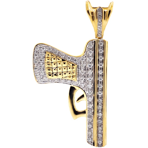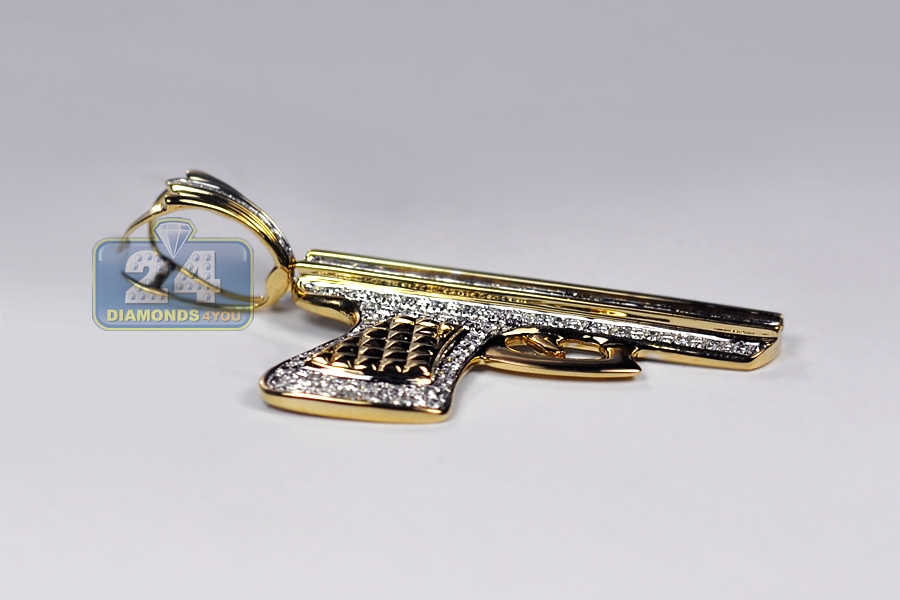 10K Yellow Gold 0.73 ct Diamond Pistol Gun Mens Pendant