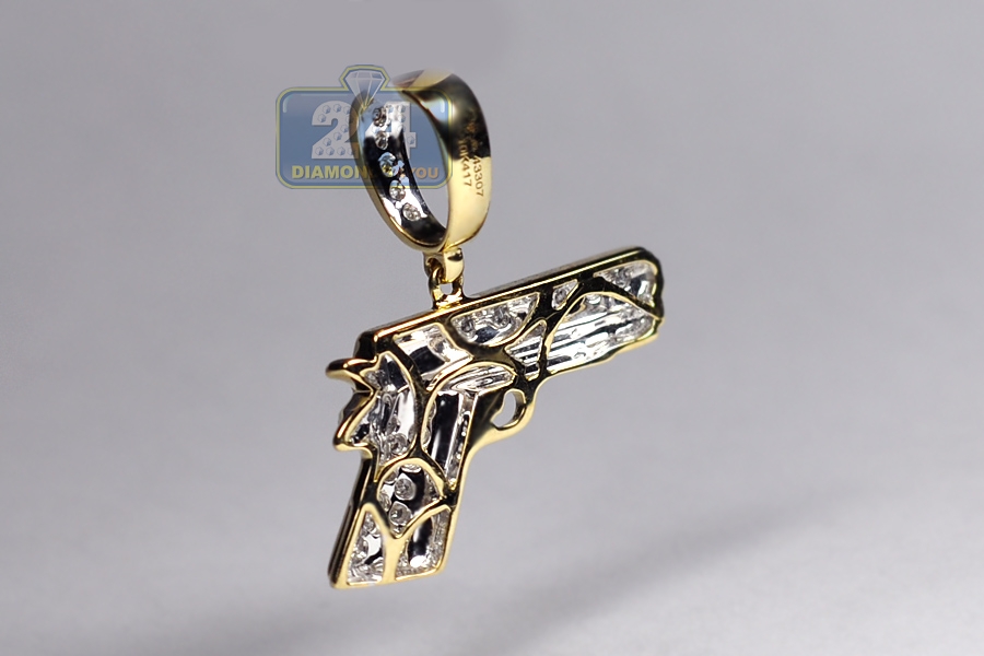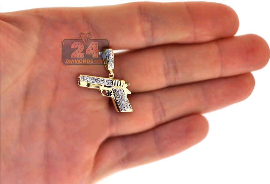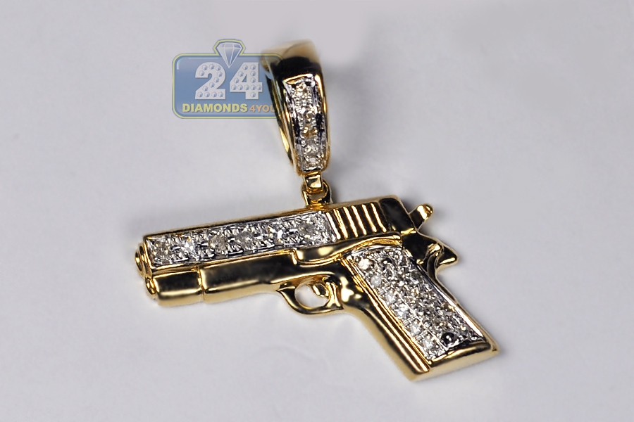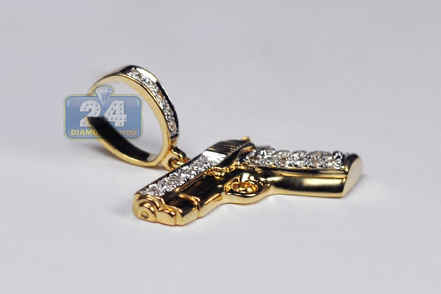 10K Yellow Gold 0.21 ct Diamond Pistol Handgun Mens Pendant