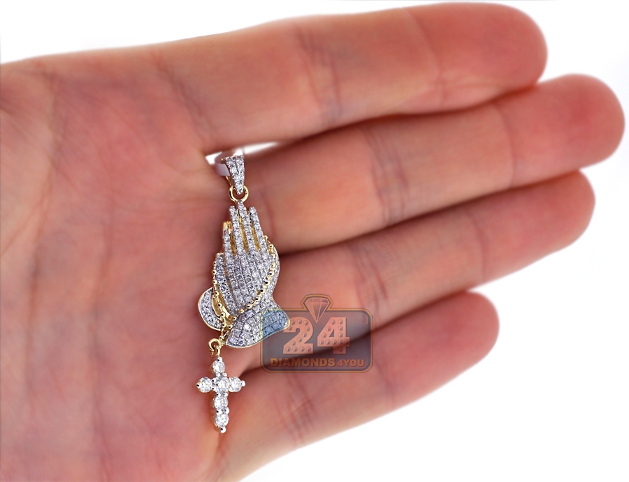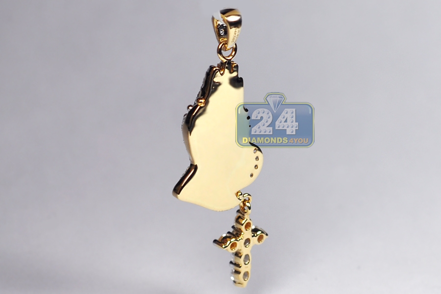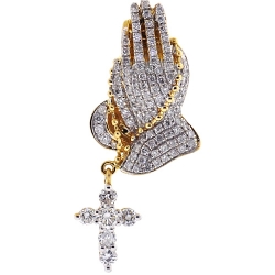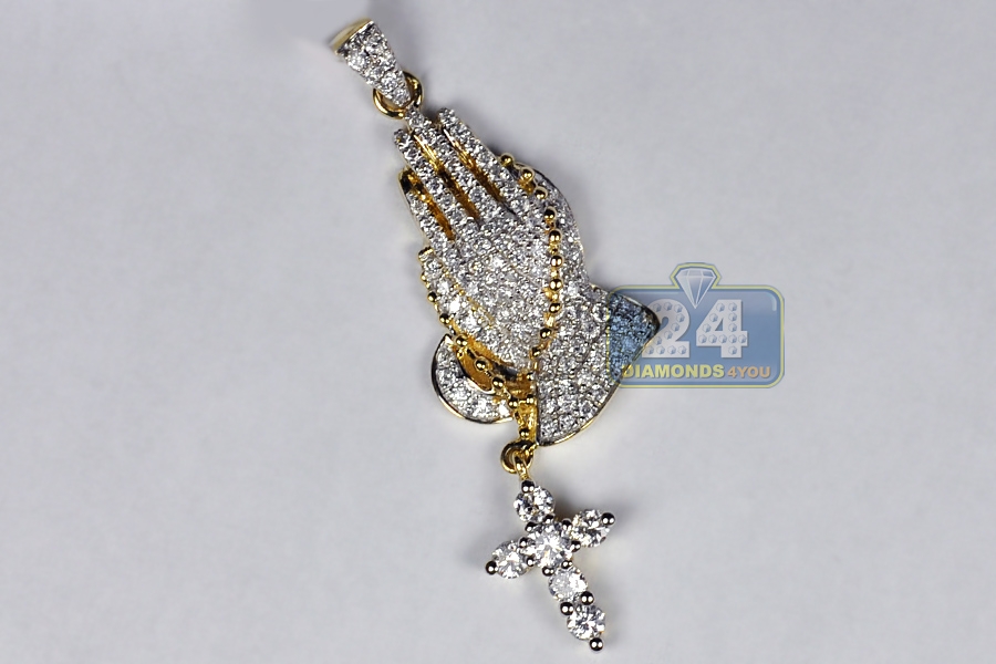 14K Yellow Gold 1.23 ct Diamond Praying Hands Cross Pendant
