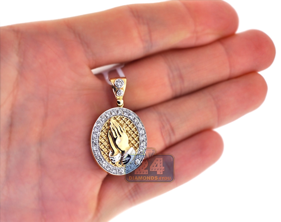 14K Yellow Gold 1.10 ct Diamond Praying Hands Mens Medallion