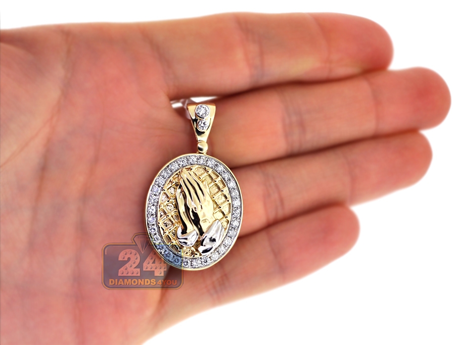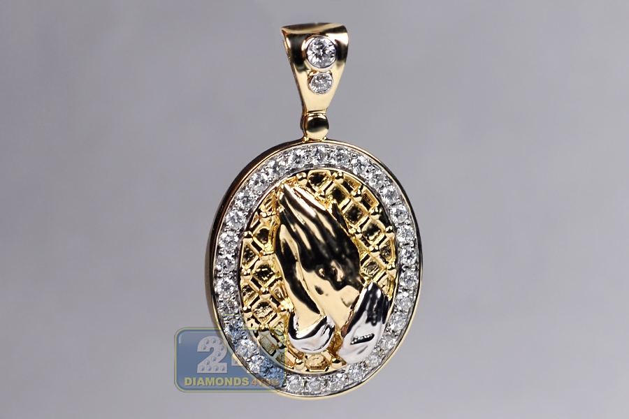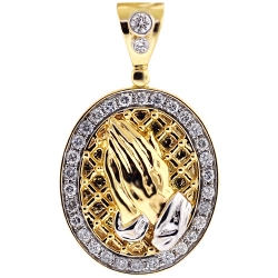 14K Yellow Gold 1.22 ct Diamond Praying Hands Mens Pendant