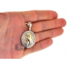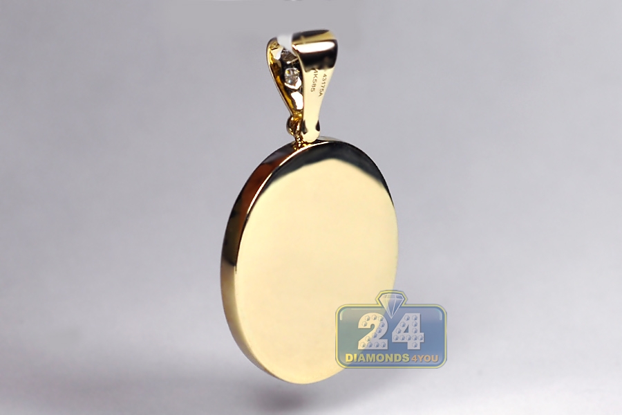 Our diamond praying hands medallion is a luxurious symbol of faith! It is artfully created from warm 14k yellow gold; the frame and bail are encrusted with icy white round brilliant-cut genuine diamonds, all weighting 1.22 carat. This men's diamond pendant features 40 mm in hanging length, and oval medallion itself is 29 x 24 mm. Wear this diamond religious pendant as a spiritual piece of jewelry!
