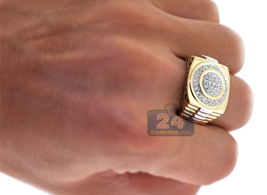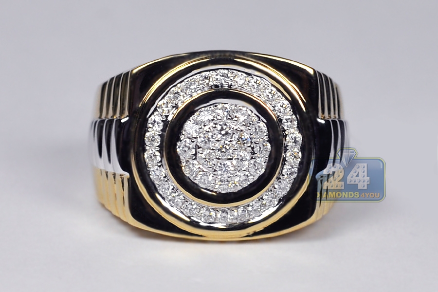 14K Yellow Gold 0.75 ct Diamond Step Mens Signet Ring
