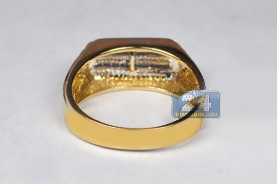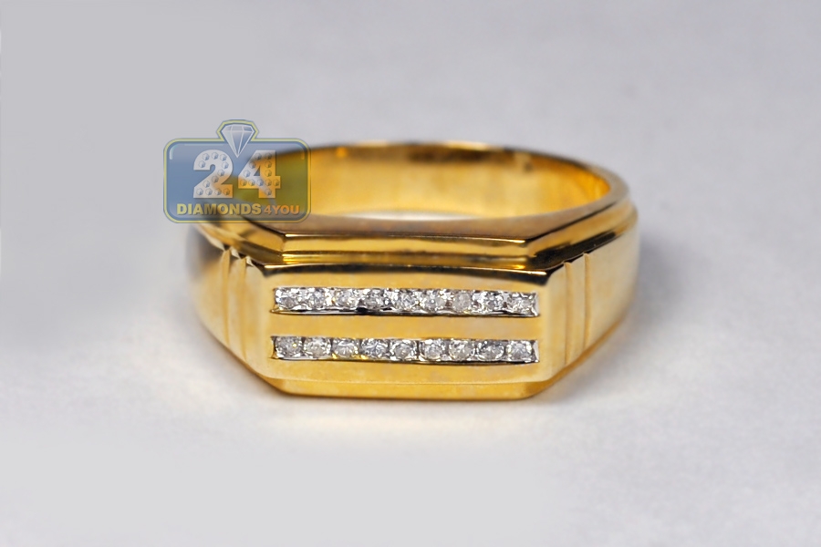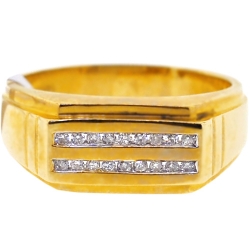 14K Yellow Gold 0.20 ct Two Row Diamond Mens Ring