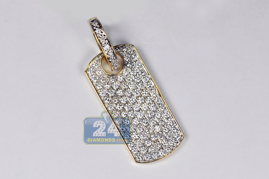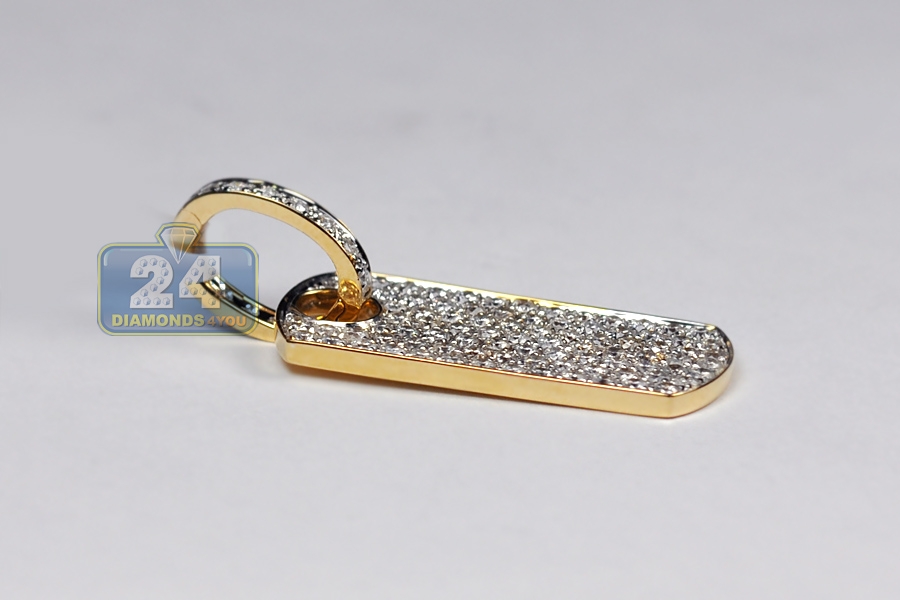 14K Yellow Gold 1.87 ct Full Diamond Dog Tag Mens Pendant