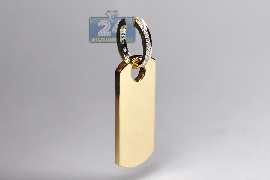 Wearing our diamond dog tag pendant, you will surely step into upscale world of fashion! It's professionally created from 14k yellow gold, and high-polished for very shiny finish. It's also set with icy white round brilliant-cut genuine diamonds, all totaling 1.87 carat. The bail can fit the chain of up to 6 mm in thickness. Complete your chic look with this men's military-style pendant!