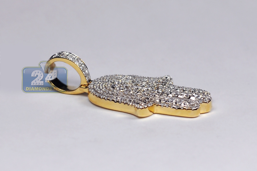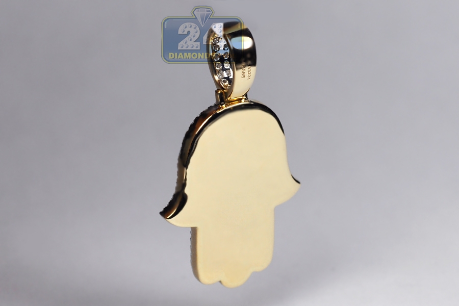 14K Yellow Gold 2.27 ct Full Diamond Hamsa Hand Mens Pendant