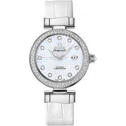 Women's Omega De Ville Ladymatic Series Diamond Bezel White Mother of Pearl Dial Watch Reference #425.38.34.20.55.001